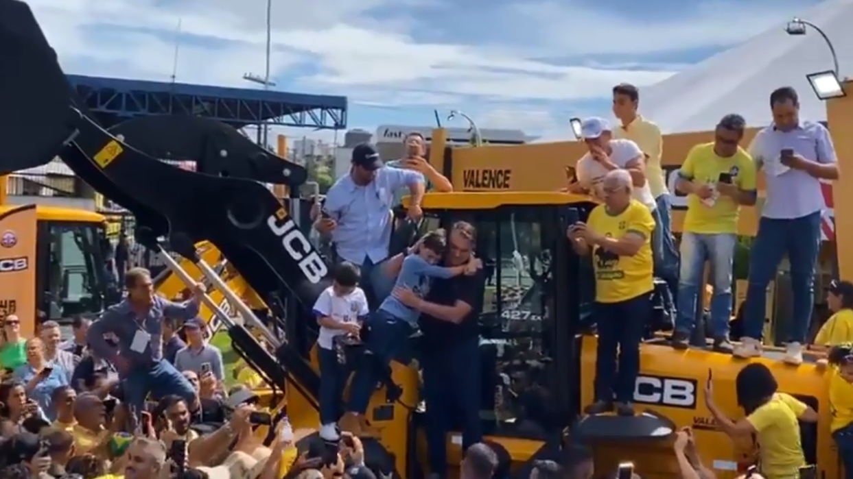 Durante esse curto período, Bolsonaro tirou fotos e subiu na máquina para cumprimentar as pessoas presentes. Em seguida, deixou o parque e seguiu para um almoço em uma churrascaria local.