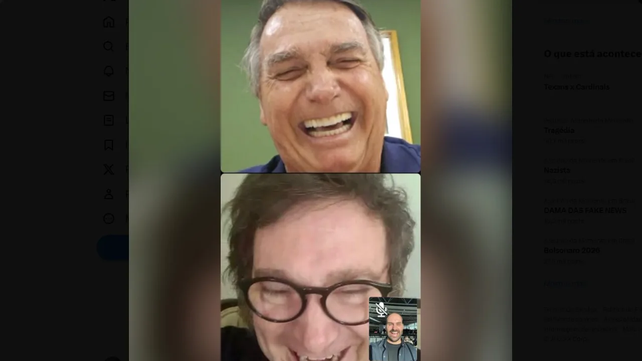 O ex-presidente gravou vídeo da ligação (assista abaixo), que contou com a participação do seu filho, o deputado federal Eduardo Bolsonaro (PL-SP).