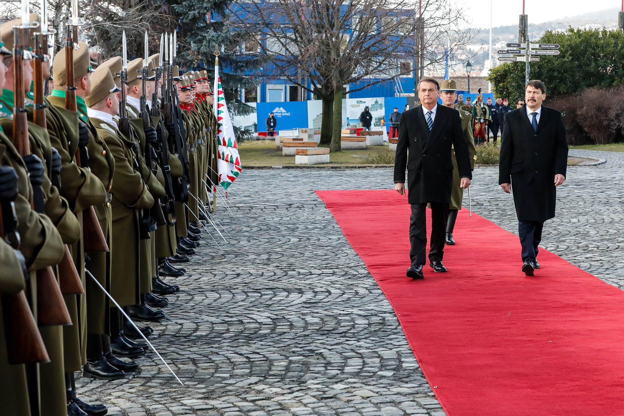 O presidente Jair Bolsonaro desembarcou na manhã desta quinta-feira (17) em Budapeste, capital da Hungria, onde se encontrou com o presidente húngaro János Áder. O primeiro compromisso do presidente brasileiro no país foi a participação em uma cerimônia de aposição floral na lápide Memorial dos Heróis Húngaros. Em seguida, Bolsonaro deve ser recebido pelo primeiro-ministro húngaro Viktor Orbán.