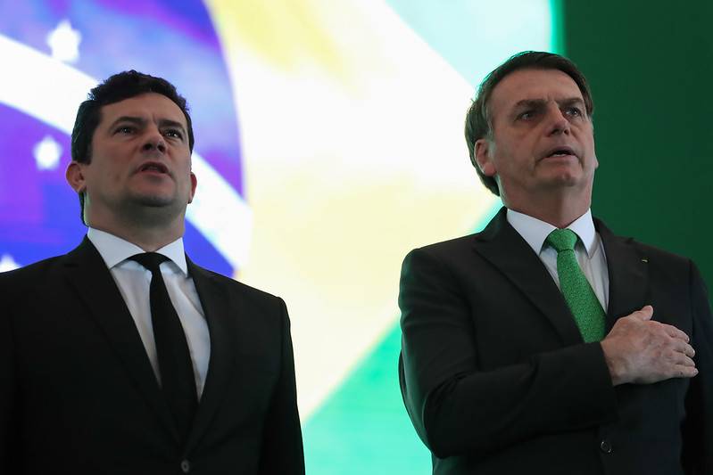 O presidente Jair Bolsonaro exaltou nesta sexta-feira (8) o trabalho feito pelo ministro da Justiça e Segurança Pública, Sergio Moro, e disse que, em parte, deve sua eleição para a Presidência da República ao atual ministro. Durante evento, ao lado de Moro, Bolsonaro fez elogios ao ex-juiz da Lava Jato. “Ele [Moro] não poderia se aproximar de políticos, não poderia ter um partido, como não teve e não tinha. Ele estava cumprindo com a sua missão [como juiz]. Se a missão dele não fosse bem cumprida, eu não estaria aqui. Então, em parte, o que acontece na política do Brasil devemos a Sergio Moro”, afirmou Bolsonaro.