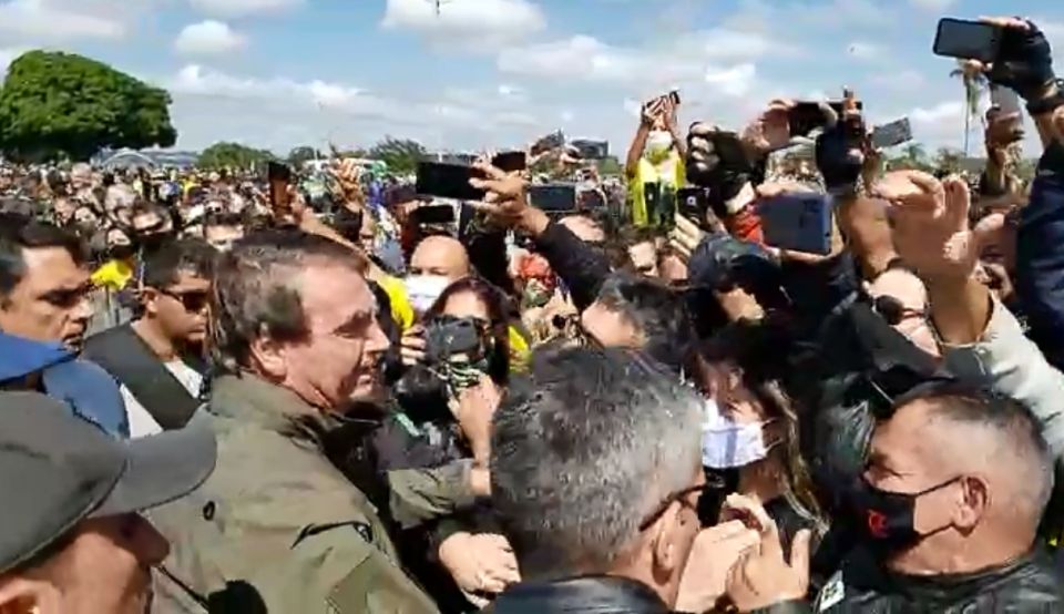 O presidente Jair Bolsonaro voltou a causar aglomeração neste domingo (9) após um passeio de moto seguido por seus seguidores em Brasília. Partidários do presidente se aglomeraram em frente ao Palácio da Alvorada para cumprimentar o presidente, muitos deles sem máscara, assim como o próprio Bolsonaro.