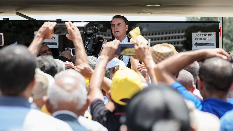 O presidente Jair Bolsonaro recebeu nesta terça-feira (1º) um grupo de garimpeiros no Palácio do Planalto por cerca de dez minutos. Os representantes da Cooperativa de Mineração dos Garimpeiros de Serra Pelada (Coomigasp) ouviram do presidente que, se houver amparo legal, vai enviar as Forças Armadas para atuar na região de Serra Pelada, no sul do Pará, e assegurar a exploração no local. A categoria pede intervenção militar na região, além de combater evasão de divisas e auxílio da engenharia do Exército para exploração de minérios. Ao criticar interesses externos no Brasil e na região amazônica, Bolsonaro disse que foco não é no índio, nem na árvore, mas no minério. "Tenho que cumprir a lei. Digo para vocês, se tiver amparo legal, eu boto as Forças Armadas lá. Não vou prometer para vocês porque não posso", disse ao garimpeiros.