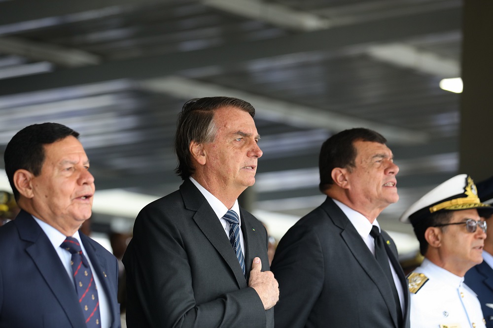 O presidente Jair Bolsonaro (PL) participou nesta terça-feira (13) de uma cerimônia militar comemorativa pelo Dia do Marinheiro, no grupamento de Fuzileiros Navais, em Brasília. Apesar de não discursar, o cerimonial do evento leu uma mensagem escrita pelo presidente, onde ele diz que o Brasil confia na atuação das Forças Armadas na defesa da pátria e da liberdade de seu povo e que os militares sempre atuarão para impedir qualquer iniciativa arbitrária.