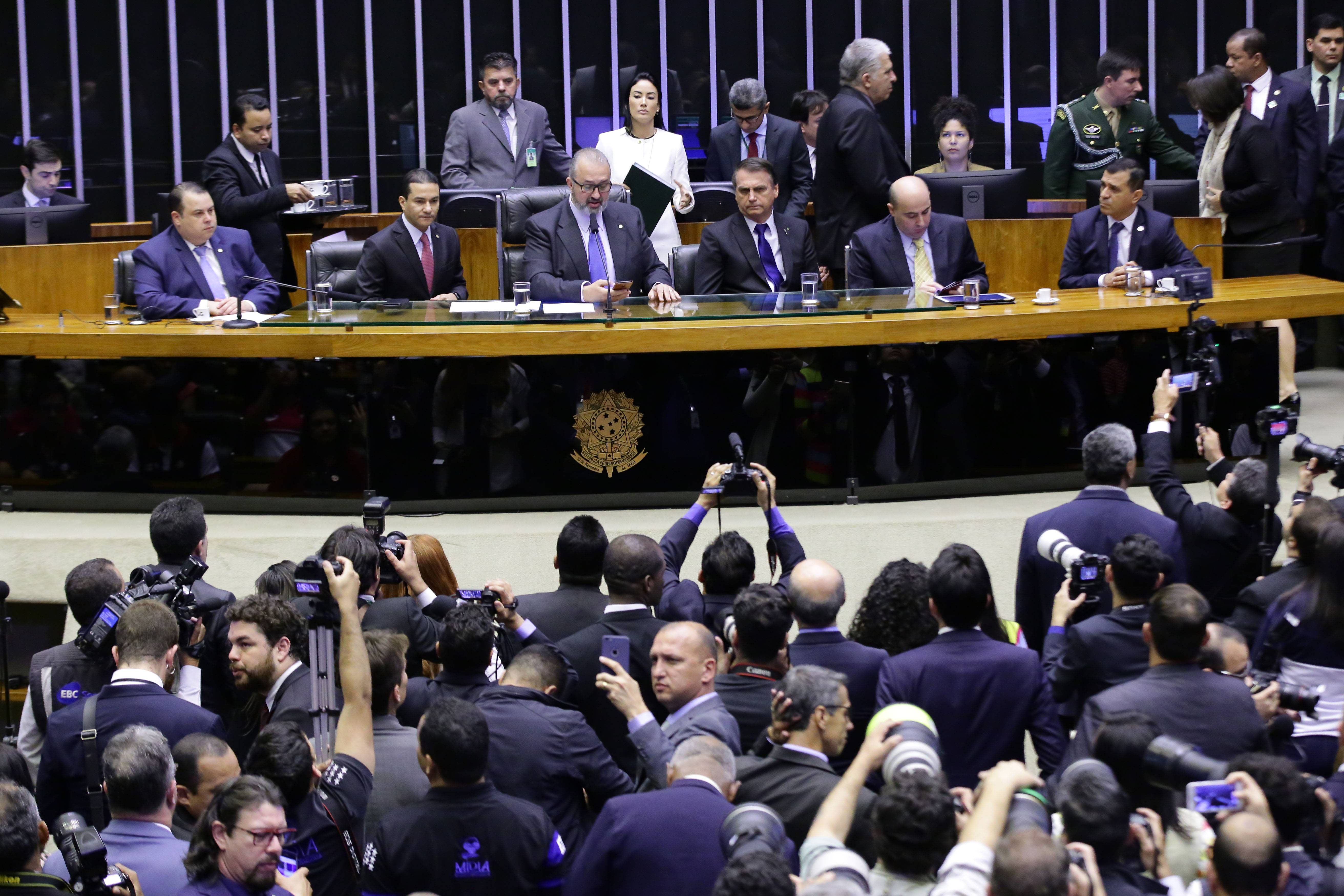 A Câmara dos Deputados encerrou há pouco a sessão solene de homenagem ao aniversário da Igreja Universal do Reino de Deus, que ocupou as primeiras horas do plenário da casa na manhã desta quarta-feira (10) e contou com a presença do presidente Jair Bolsonaro (PSL). Com a finalização da sessão, os deputados devem iniciar em minutos a votação do texto-base da reforma da previdência.