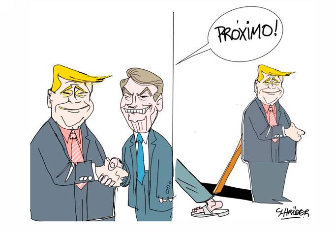 A mostra com 36 desenhos de 19 artistas apresentava desenhos com o presidente da República lambendo botas de Donald Trump, além de charges do ministro da Justiça, Sergio Moro, que em uma delas aparecia vestido como um super-homem inflável esvaziando e outra sentado no colo do personagem norte-americano “Tio Sam”. A exposição foi organizada pela associação Grafistas Associados do Rio Grande do Sul (Grafar), apoiada pelo vereador petista Marcelo Sgarbossa, que solicitou o uso do espaço na Câmara dos Vereadores. A Grafar alega censura na atitude da casa legislativa em recolher charges e quadrinhos de Bolsonaro e divulgou os desenhos no Facebook.