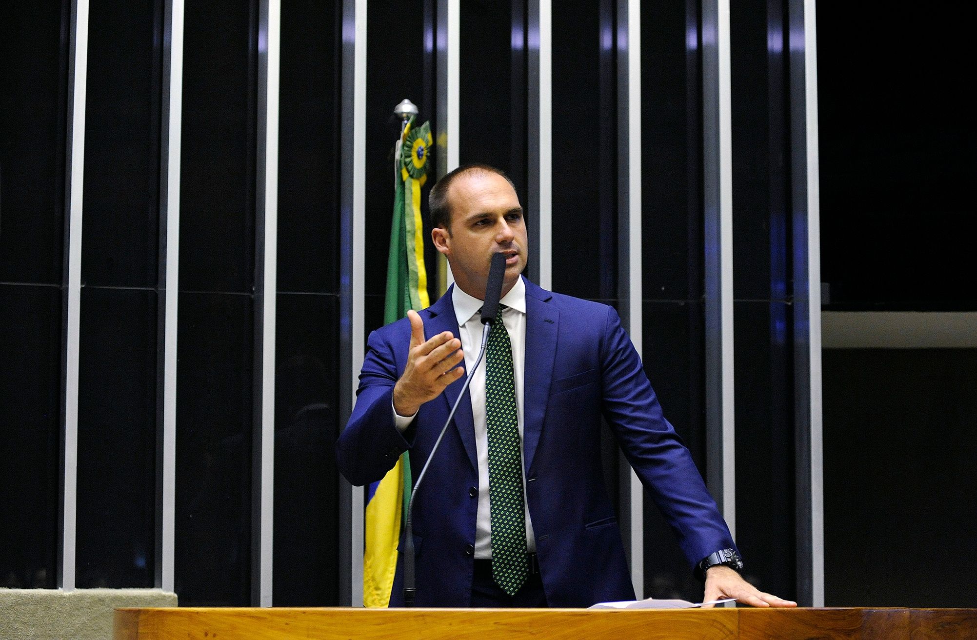 O deputado federal Eduardo Bolsonaro (PSL-SP) começou a campanha dentro do Senado para ter o nome aprovado para ser embaixador do Brasil em Washington. O primeiro gabinete foi o do presidente da Comissão de Relações Exteriores que deve sabatinar o candidato, senador Nelsinho Trad ( PSD-MS), diz O Estado de São Paulo. Para ter o nome aprovado, Eduardo tem que passar pela sabatina e ter o apoio da maioria dos 81 senadores no plenário. O presidente Jair Bolsonaro, pai de Eduardo, deve oficializar a indicação nos próximos dias. O governo ainda aguarda o documento enviado aos Estados Unidos que consulta o nome de Eduardo. A expectativa é de que a resposta chegue em até 10 dias.