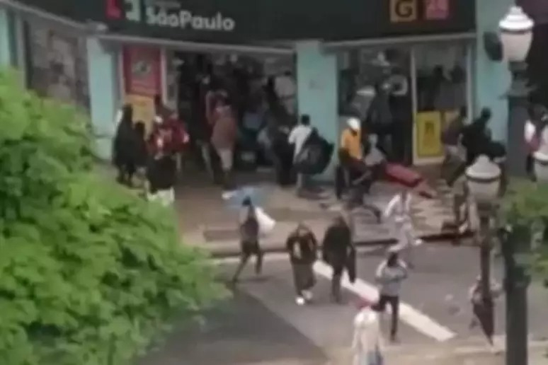 Imagens de circuito interno da drogaria São Paulo mostram um grupo de cerca de 50 pessoas invadindo o comércio, que fica localizado na praça Júlio Mesquita, enquanto funcionários trabalhavam no local. Homens da Guarda Civil Metropolitana chegaram ao local, mas não conseguiram conter os saques.