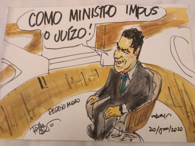 O ministro da Justiça e Segurança Pública, Sergio Moro, repercutiu no Twitter a entrevista que concedeu ao programa de entrevistas Roda viva, da TV Cultura, na noite de segunda-feira (20) (veja como foi). Foi a segunda participação de Moro - a primeira foi em 2018, quando era juiz da Lava Jato. "Foi uma boa experiência no Roda Viva. Jornalistas às vezes duros, mas dedicados. Abaixo desenho do Paulo Caruso. Para quem assistiu, a paráfrase era do Mark Twain, os boatos sobre minha "demissão" foram um tanto exagerados", disse Moro, pela rede social.