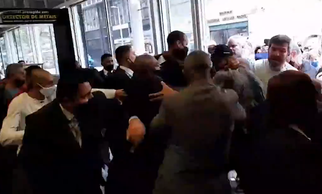 Um grupo de manifestantes contrários à adoção do passaporte da vacina no estado do Rio de Janeiro tentou invadir a Assembleia Legislativa (Alerj) na tarde desta quarta-feira (8). Os seguranças da Alerj conseguiram conter os manifestantes. O parlamento fluminense analisa o projeto de lei 4.919/21, de autoria dos deputados Filipe Soares (DEM) e Márcio Gualberto (PSL), que proíbe a discriminação de pessoas que se recusarem a tomar a vacina contra a Covid-19. A informação foi divulgada pelo portal g1.