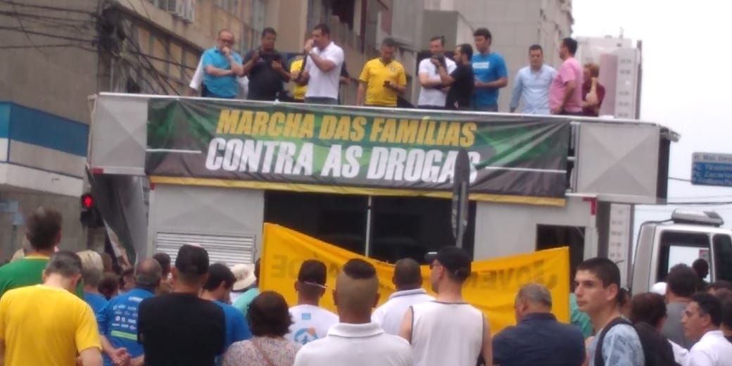 Um julgamento do Supremo Tribunal Federal, ainda sem data, sobre uma ação de porte de drogas movida pela Defensoria de São Paulo, levou brasileiros de 20 estados e do Distrito Federal às ruas neste domingo (3). A Marcha das Famílias Contra as Drogas, iniciativa inédita no país, sob a coordenação da Secretaria Nacional de Cuidados e Prevenção às Drogas, do Ministério da Cidadania, tinha a intenção de mostrar aos ministros a posição da sociedade sobre o tema: contrária à liberação das drogas. Uma ação iniciada em 2015 quer eliminar da lei 11.343/2006, o artigo 28, que proíbe uso, porte, compartilhamento e armazenamento de drogas e plantação de maconha. Dos 11 ministros, 3 já votaram a favor dessa posição, o que na prática autorizaria o uso e o porte de drogas ilícitas no Brasil. Entre os participantes das manifestações, que estavam programadas para ocorrer em 53 cidades, estava o deputado federal Eduardo Bolsonaro (PSL-SP). Na Esplanada dos Ministérios, em Brasília, ele defendeu que a mudança da legislação "não é pertinente ao STF”, mas sim ao Congresso.