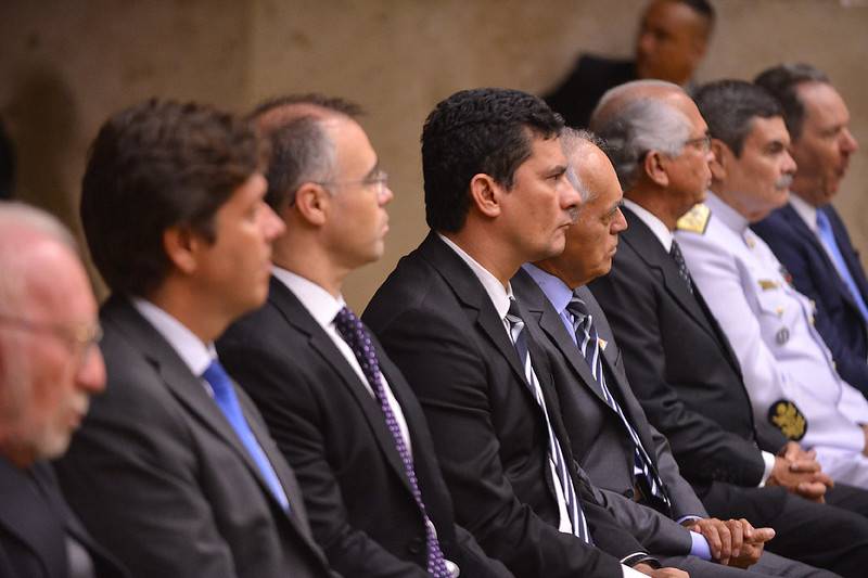 Três ministros do governo do presidente Jair Bolsonaro participaram da abertura do ano no Judiciário nesta segunda-feira (3). O ministro da Justiça e Segurança Pública, Sérgio Moro, da Advocacia-Geral da União (AGU), André Mendonça, e da Secretaria-Geral da Presidência, Jorge Oliveira, chegaram juntos ao Supremo Tribunal Federal (STF) - os três são cotados para as duas vagas na Corte. A primeira vaga será aberta em novembro, com a aposentadoria de Celso de Mello, enquanto Marco Aurélio Mello encerra as atividades no Supremo em julho de 2021.