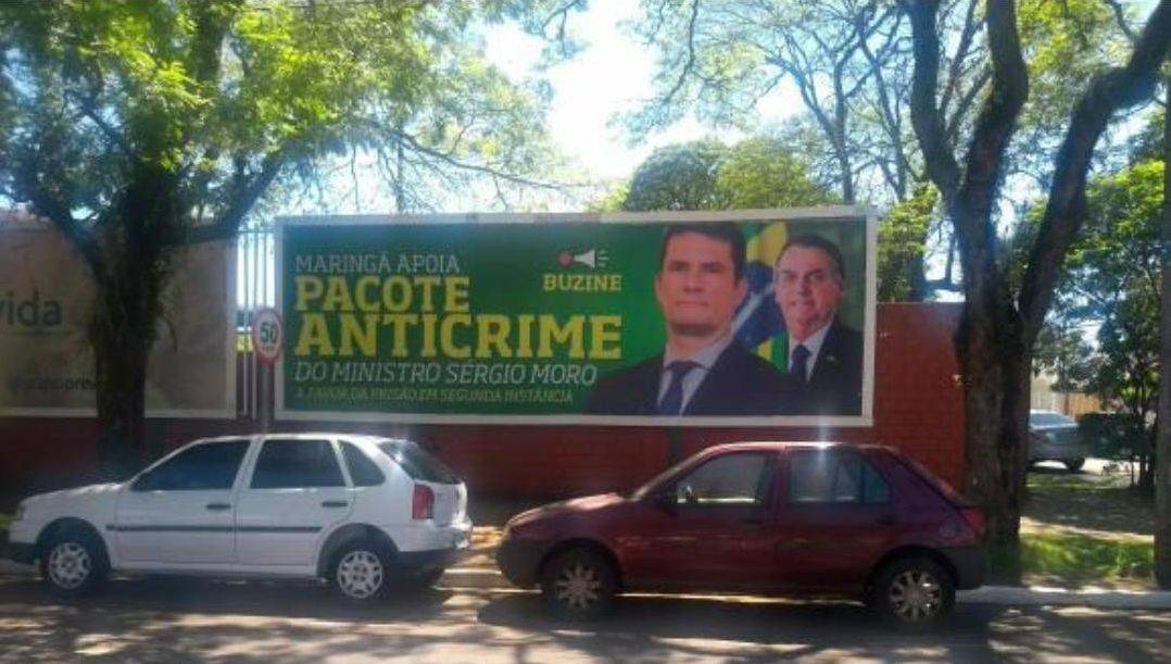 O ministro da Justiça, Sergio Moro, recorreu ao Twitter neste sábado (16) pela manhã para agradecer a divulgação em Maringá, no Paraná, de outdoors em defesa das medidas de combate à criminalidade encaminhada por ele ao Congresso Nacional, o chamado Pacote Anticrime. “#PacoteAnticrime , em Maringá/PR, Av. Cerro Azul. Não poderia faltar o apoio da terra natal. Obrigado por tudo”, escreveu o ministro, que nasceu na cidade localizada no norte do Paraná.