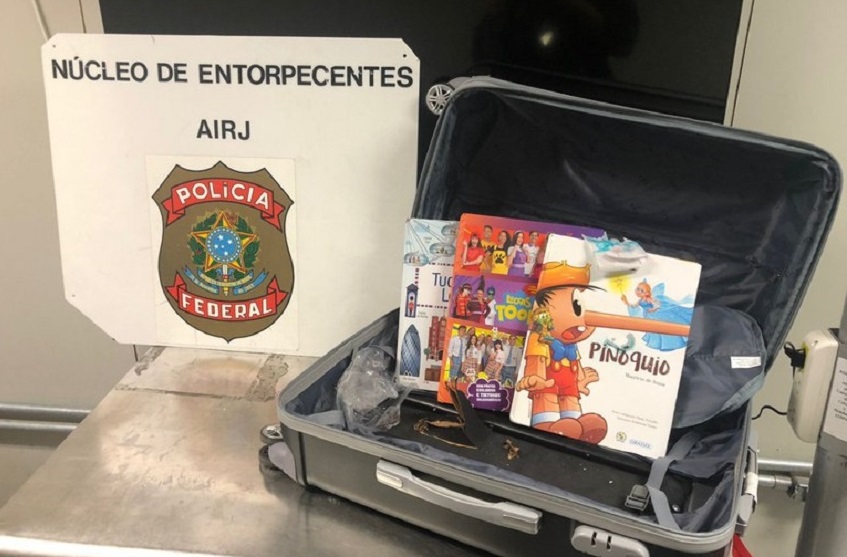 A Polícia Federal prendeu em flagrante no domingo (13) uma mulher que pretendia embarcar para a Europa com drogas escondidas dentro de livros infantis e no fundo falso das malas. Os agentes encontraram aproximadamente 7 kg de cocaína dentro da bagagem de uma passageira no Aeroporto Internacional do Galeão, no Rio de Janeiro. A suspeita, que vinha de Tambaú (SP), tentava viajar para Nice, na França, em um voo com escala em Lisboa, Portugal. Ela foi encaminhada para a Superintendência Regional da PF, onde deve responder pelo crime de tráfico internacional de drogas, cuja pena pode chegar até 15 anos de prisão.