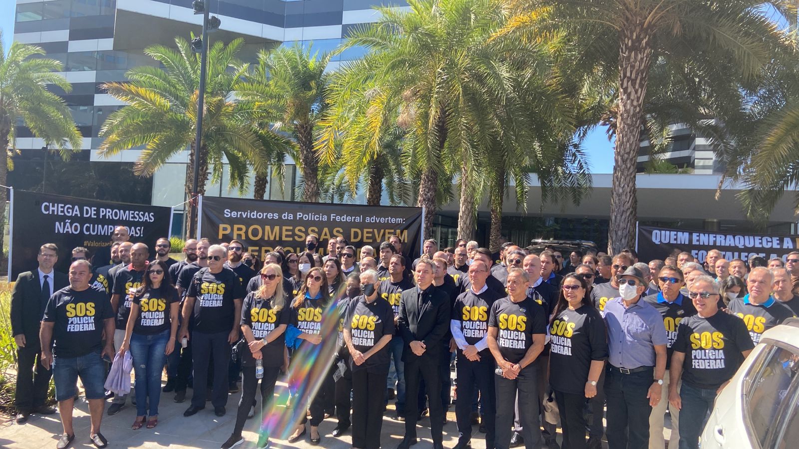 Policiais federais realizaram nesta quarta-feira (1º) um ato pela valorização da categoria na sede da Polícia Federal em Brasília. A mobilização é parte de ações previstas por agentes em todo o país para pressionar o presidente Jair Bolsonaro (PL) a assinar a medida provisória da reestruturação e da valorização da PF, segundo a categoria. O presidente da Associação Nacional dos Delegados de Polícia Federal (ADPF), Luciano Leiro, afirmou, em nota, que Bolsonaro será "avaliado pelo eleitorado este ano" e "deixará a marca de total descaso com a Polícia Federal e com os policiais".