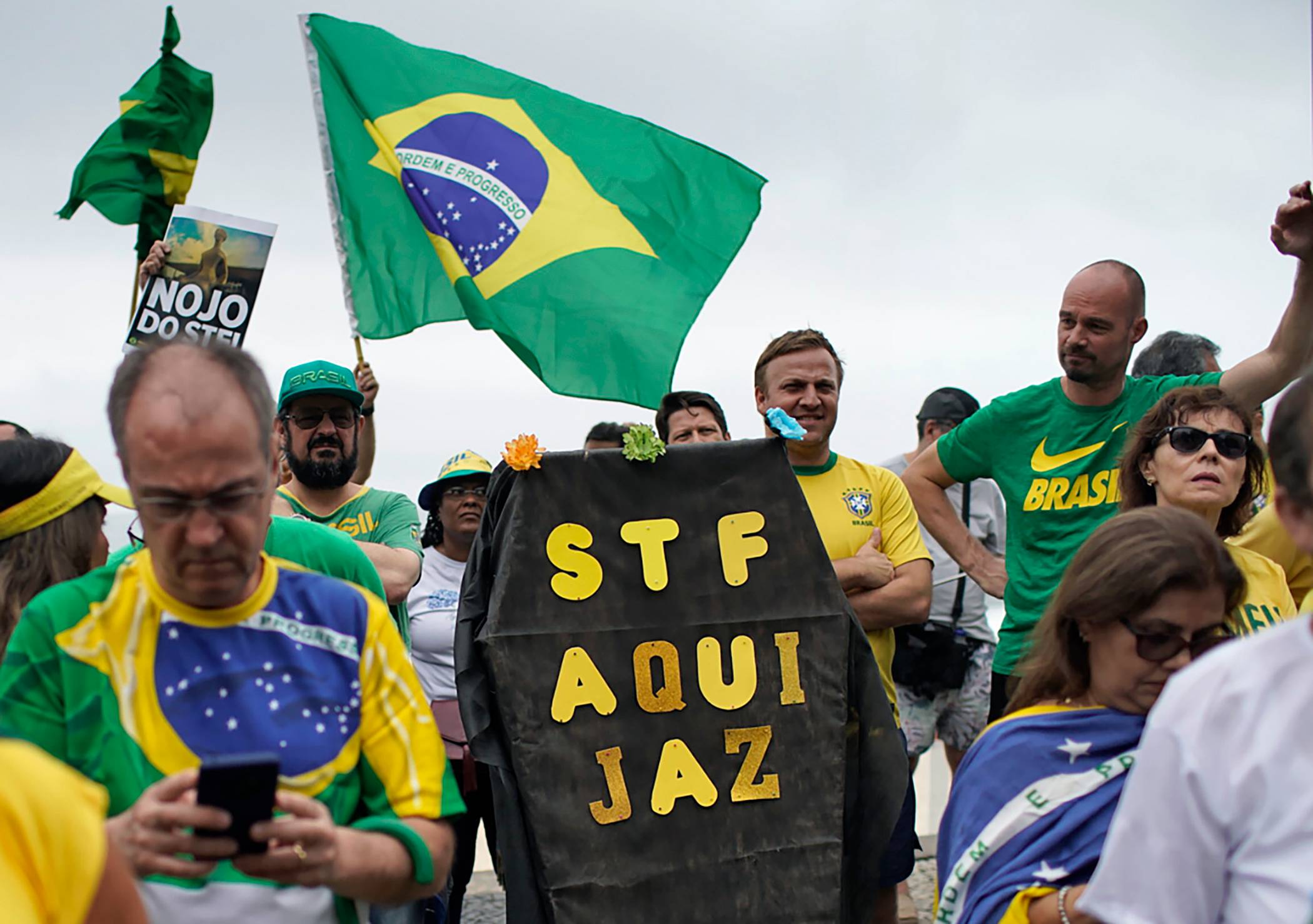 "A decisão do STF foi um golpe, um ato político", discursou uma das organizadoras do evento, Adriana Balthazar, do Vem Pra Rua/RJ. "Estamos na rua para pedir o fim da impunidade."