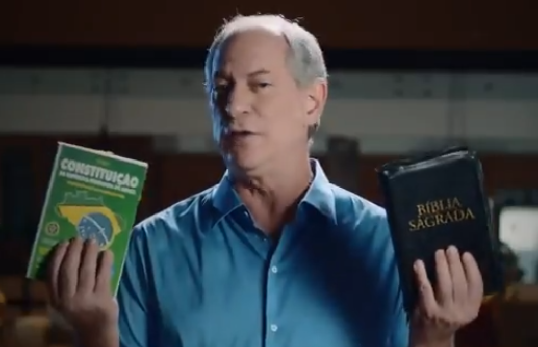 O ex-ministro e ex-governador Ciro Gomes (PDT), pré-candidato a presidente, postou na segunda-feira (21) um vídeo em suas redes sociais em que segura a Bíblia em uma mão e a Constituição na outra. "O Brasil é uma República laica, ou seja, o Estado tem vida independente das igrejas, e as igrejas têm vida independente do Estado. Mas esses livros não são conflitantes", diz Ciro.