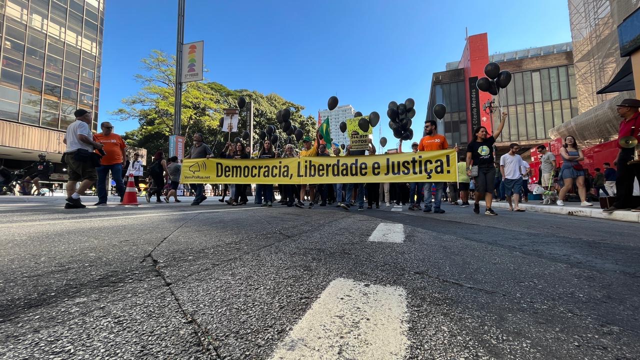O ato continuou com uma caminhada silenciosa pela Avenida Paulista. Segundo os manifestantes, para simbolizar o luto pela democracia brasileira. Cartazes apontavam decisões judiciais contra Google e Telegram como sinais de fragilidade da liberdade no país. A recente visita do presidente venezuelano, Nicolás Maduro, também foi criticada.