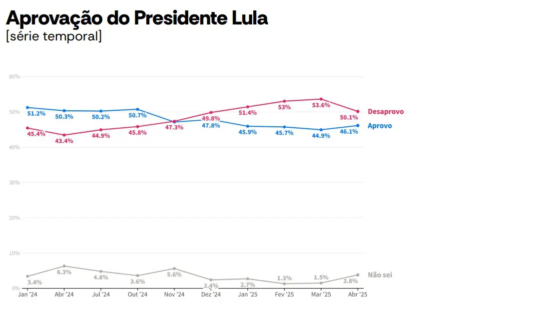 A desaprovação ao governo do presidente Luiz Inácio Lula da Silva (PT) começou a recuar ao longo deste mês de abril de acordo com uma nova rodada da pesquisa AtlasIntel em parceria com a Bloomberg divulgada nesta segunda (28).