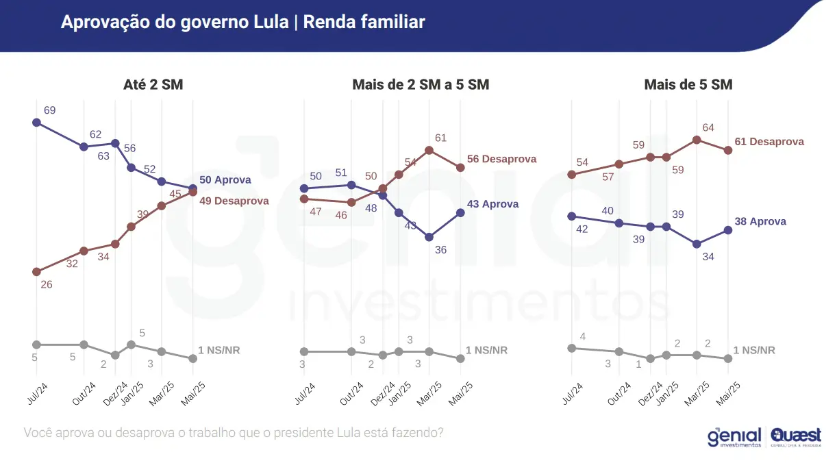 A disparada da desaprovação ao governo do presidente Luiz Inácio Lula da Silva (PT) já atinge principalmente a sua base eleitoral, de católicos e pessoas que ganham até dois salários mínimos, como revelou a nova pesquisa de avaliação da Quaest divulgada nesta quarta (4).