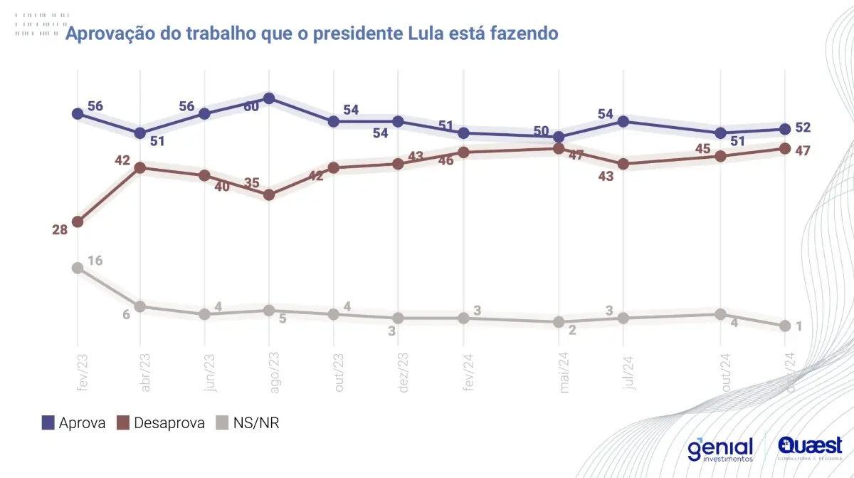 A Quaest ouviu 8.598 pessoas entre os dias 4 e 9 de dezembro, com uma margem de erro de 1 ponto percentual para mais ou para menos e nível de confiança de 95%.