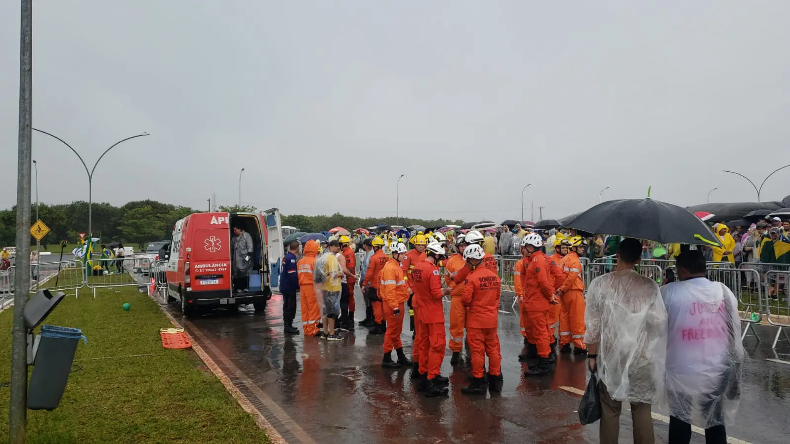 Manifestantes que participavam da Caminhada da Liberdade neste domingo (25), em Brasília, precisaram ser evacuados da Praça do Cruzeiro após um raio atingir o local. Pessoas precisaram ser socorridas por bombeiros que estavam presentes após a descarga elétrica.