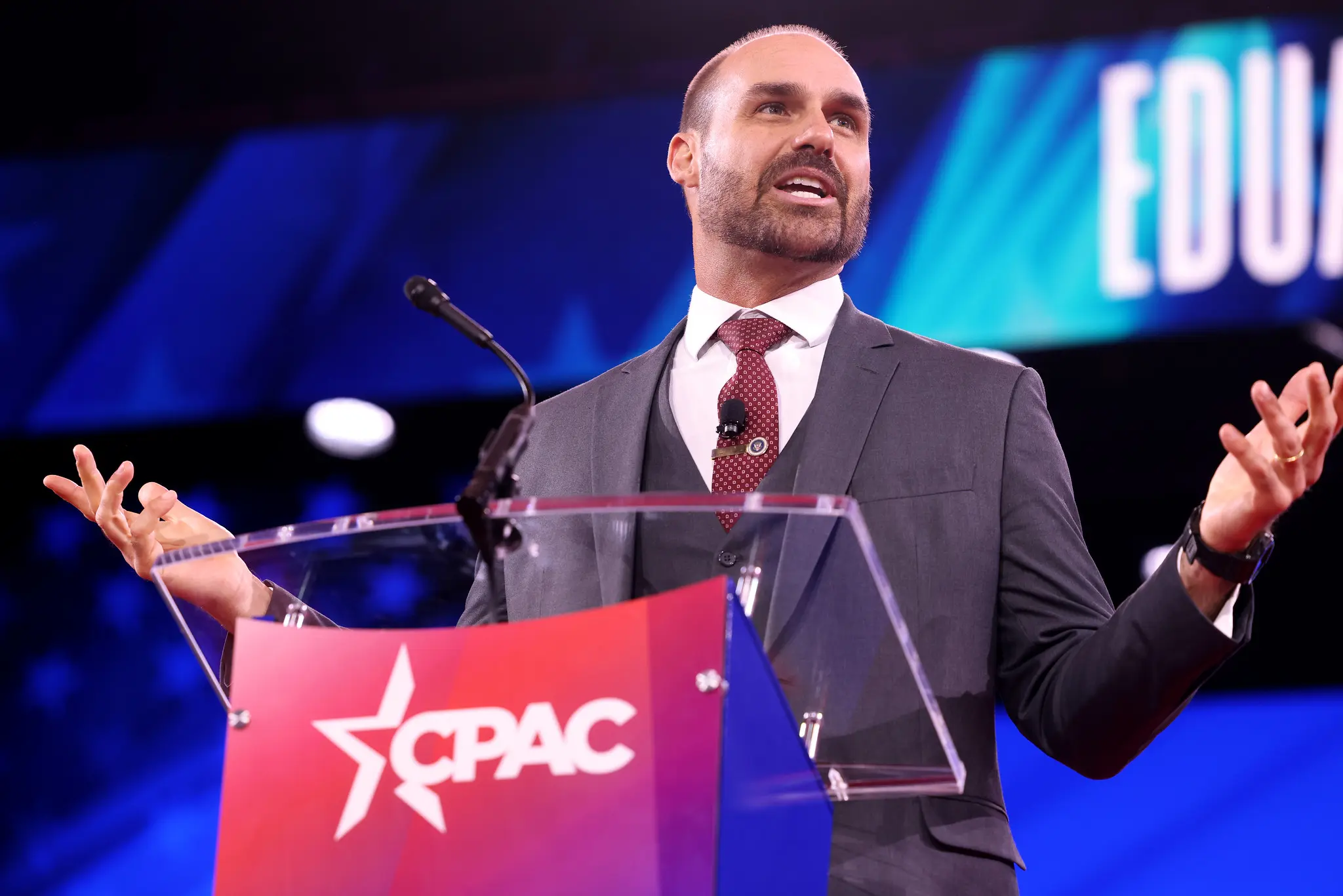 O ex-deputado federal Eduardo Bolsonaro (PL) desafiou o ministro do Supremo Tribunal Federal (STF) Alexandre de Moraes a enviar uma carta rogatória ao governo dos Estados Unidos pedindo sua intimação. O objetivo seria explicar uma fala na Conferência da Ação Política Conservadora (CPAC) em que disse estar preparando um vídeo para mostrar a seu pai, o ex-presidente Jair Bolsonaro (PL).