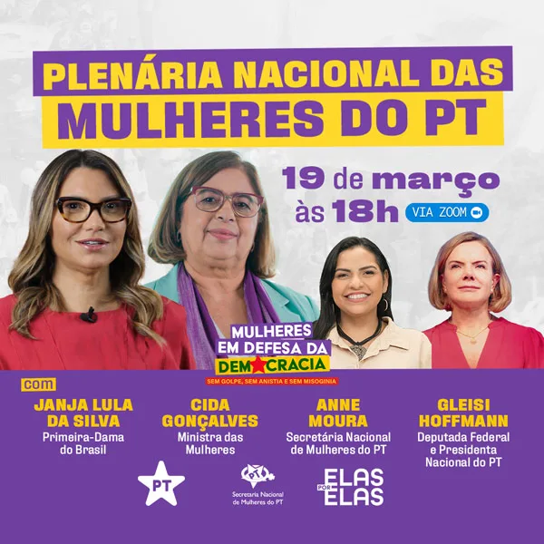 “Será uma plenária para consolidar a luta por mais mulheres na política, apresentando a conjuntura política e os instrumentos de comunicação para pré-candidatas petistas, como o Elas por Elas Formação, a Casa 13 e o N.A.V.E (Núcleo de Apoio aos Vereadores e Vereadoras do PT”, diz o comunicado do PT.