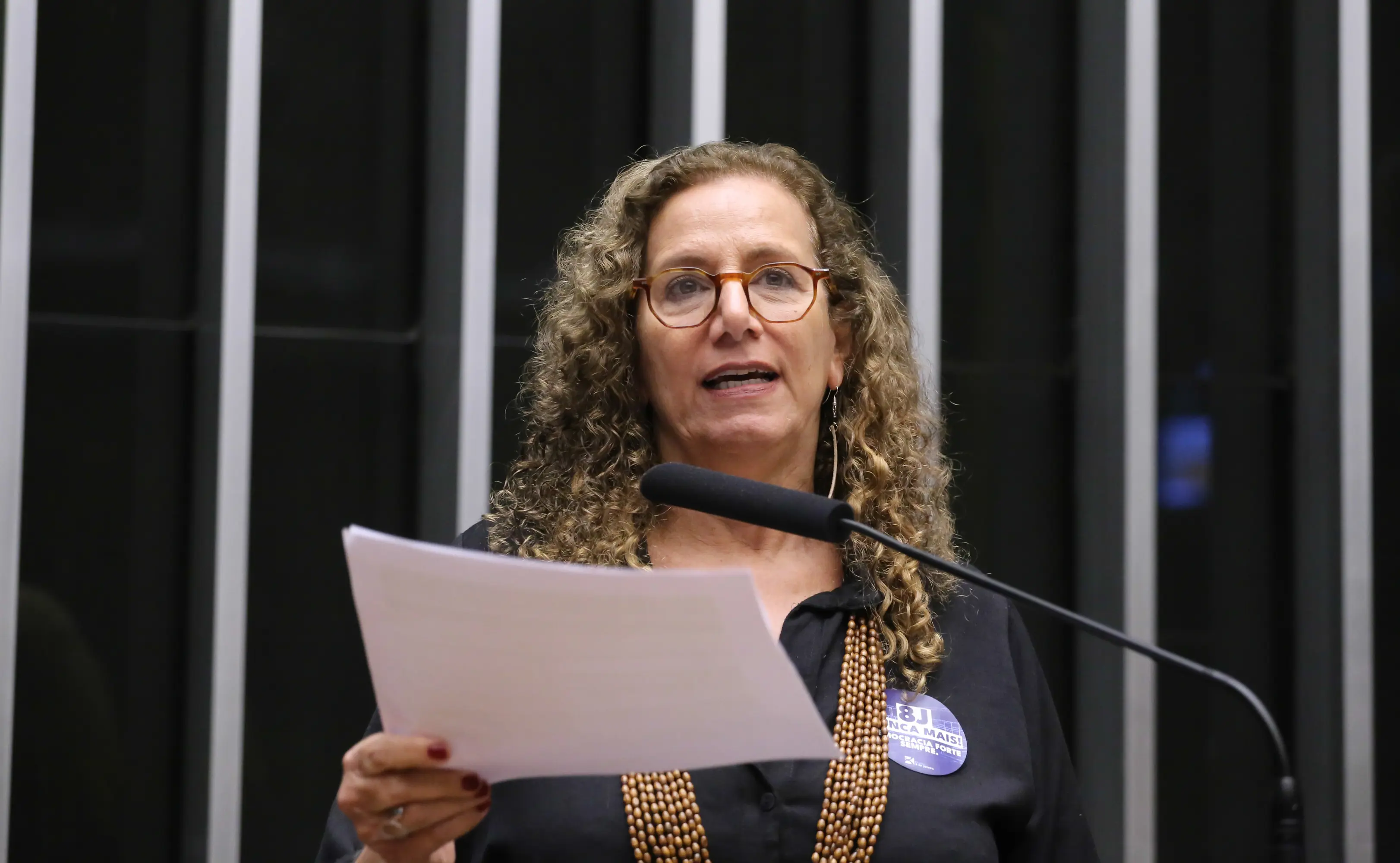 “Aqui, se aprovarmos a dosimetria nos termos apresentados, estaremos elogiando os golpistas”, declarou a deputada, ao criticar o que classificou como tentativa de flexibilização penal ampla.