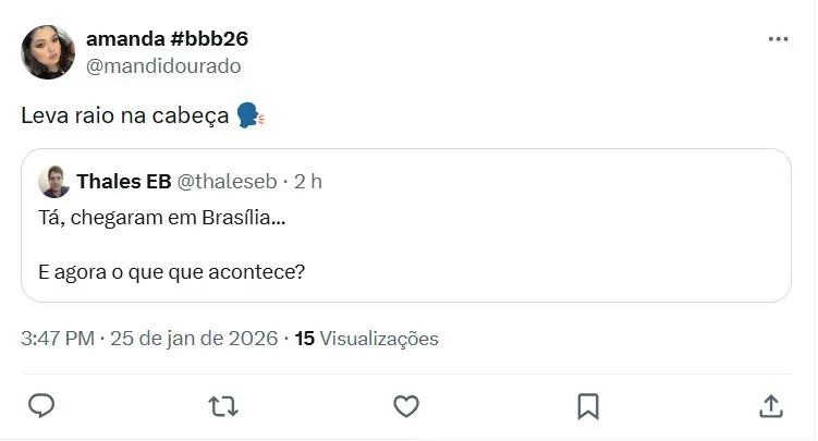 Entre as publicações, há comentários que tratam a descarga elétrica como uma “resposta divina”, além de mensagens que ironizam o risco enfrentado pelos manifestantes e relativizam a gravidade do acidente. Algumas postagens também sugerem que os feridos seriam “responsáveis” pelo que ocorreu, por participarem do ato político.