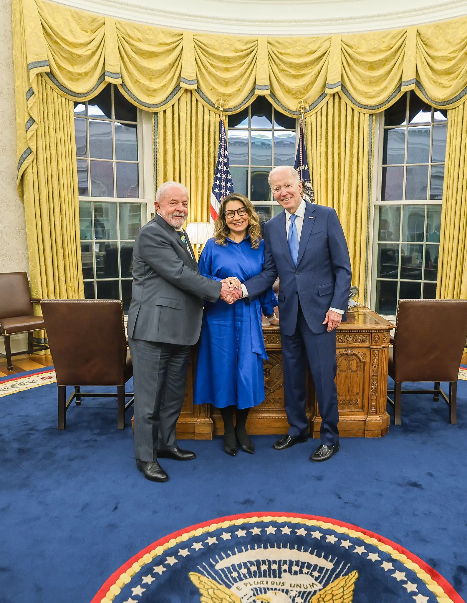 Durante uma visita que o presidente Lula fez à Casa Branca para se reunir com o ex-presidente Joe Biden em 2023, Janja protagonizou um momento para lá de inusitado. A primeira-dama aparece na foto oficial feita entre os dois líderes, na sala do líder norte-americano.