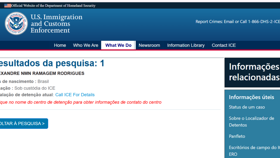 O nome de Ramagem já aparece no site oficial do governo americano com o status “sob custódia do ICE”. Veja abaixo: