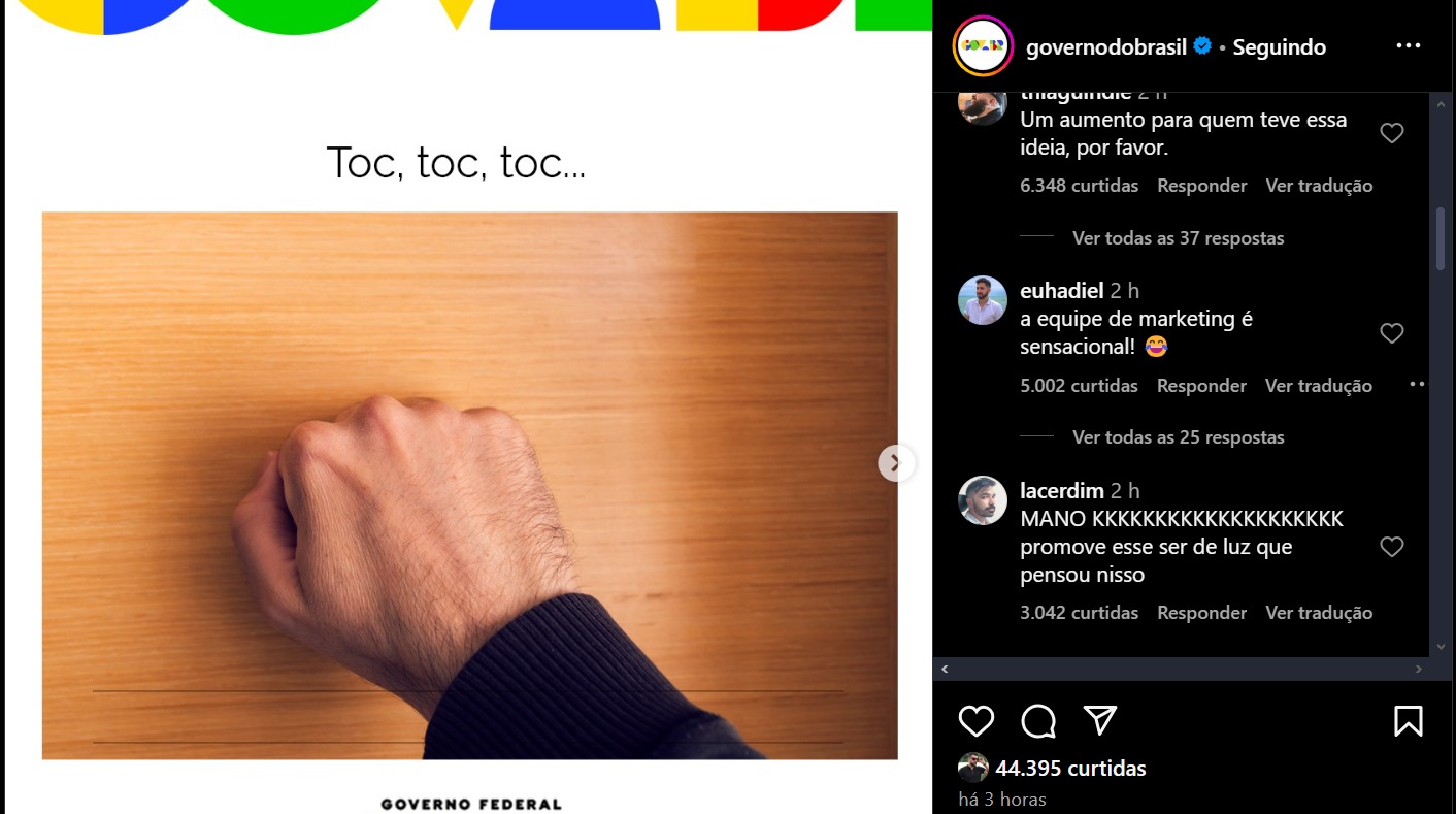 No meio da tarde, após algumas horas de repercussão do caso nas redes sociais, a página do governo federal no Instagram publicou o que seria uma orientação à população sobre a importância de receber os agentes comunitários de saúde.
