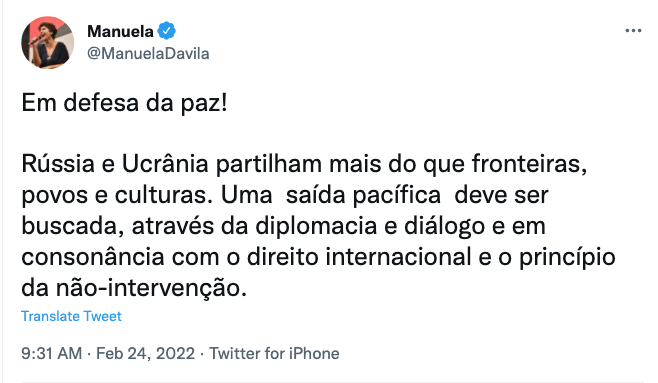 Agora que Putin de fato invadiu a Ucrânia e declarou guerra ao país, sem resistência por parte do Ocidente, vemos a reação infantiloide dessa esquerda boboca. Vou usar dois exemplos aqui, mas o tom é o mesmo por toda parte: