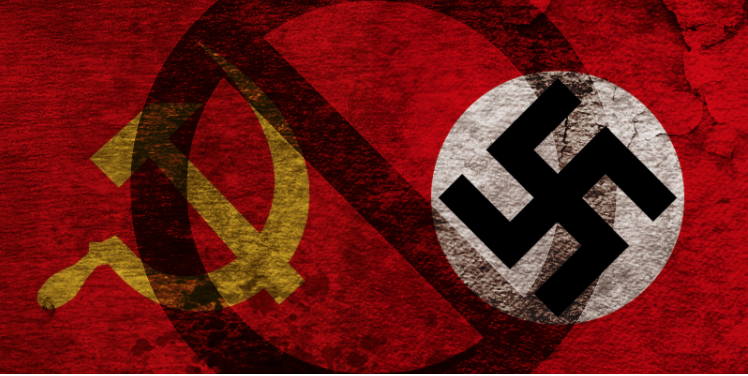 A simetria se aplica ao caso. As duas doutrinas e os regimes delas derivados são genocidas. Causaram terríveis sofrimentos à humanidade quando alcançaram o poder. São contra e atuam contra direitos fundamentais da pessoa humana. Na semana passada, em Curitiba, liderados por um vereador do PT, portando bandeiras de um partido comunista, baderneiros invadiram a igreja do Rosário durante a celebração da missa.