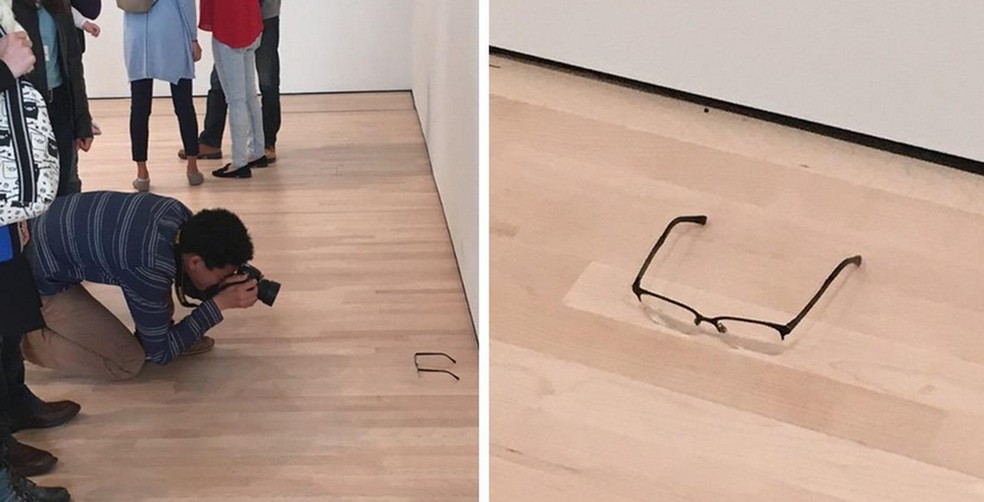 Tão sem sentido que um menino deixou seu óculos no chão de um museu e as pessoas pararam para admirá-lo achando que fazia parte da
