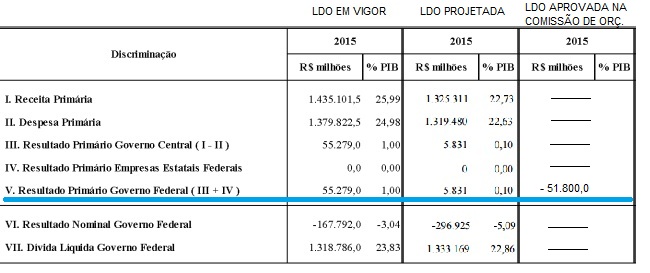 Pela LDO original, o Brasil faria um esforço fiscal de pagamento da dívida na ordem de 55 bilhões de reais. E mesmo assim não seria suficiente para pagar os juros e principal da dívida. Mesmo com esse esforço, o resultado final do balanço do governo seria de um prejuízo (que chamamos de déficit nominal) de quase 168 bilhões de reais negativos.
