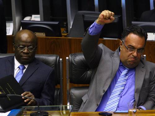 Mas o que eu quero, agora, provar de vez é o incrível “respeito” que o PT tem pela liturgia do cargo, pelas instituições republicanas. E farei isso em uma única imagem, pois elas podem falar mais do que mil palavras. Esse aí abaixo na foto não é mais do PT, apenas porque estamos em ano eleitoral. Mas o PT ainda o defende, especialmente na surdina. E o mais importante: ninguém do PT veio a público condenar esta sua atitude desonrosa, desrespeitosa, ofensiva, abjeta, que simbolizou um ataque sem igual, de moleque, às instituições republicanas do nosso país. Vejam, pois recordar é viver: