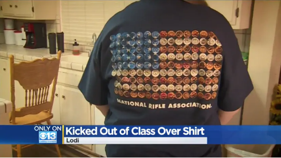 Uma aluna de high school na California foi expulsa de sala de aula e mandada para o diretor por usar uma camisa da National Rifle Association (NRA), uma das mais populares ONGs do mundo em defesa da Segunda Emenda Constitucional e o direito de ter e portar armas de fogo.