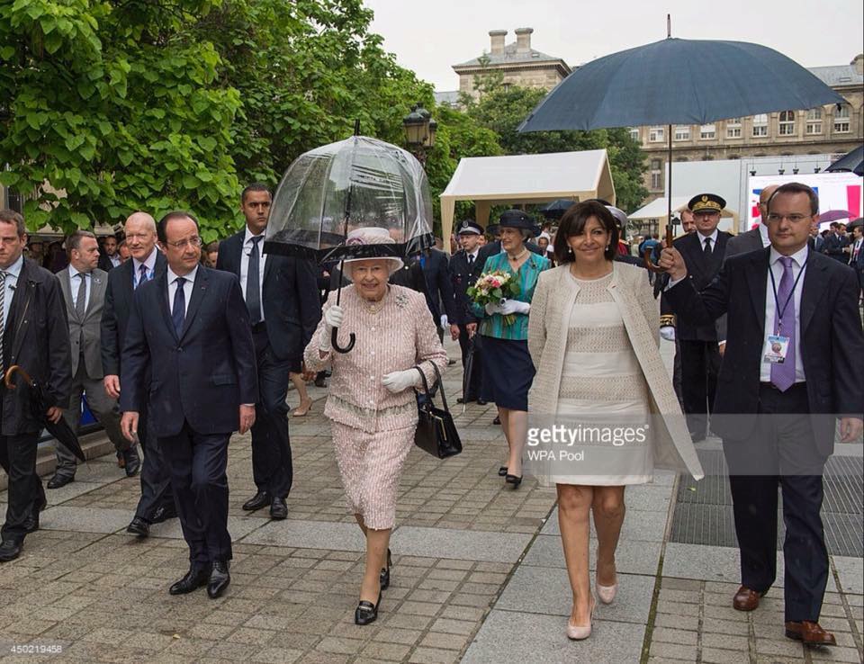 Mas, agora, vou tentar explicar as razões dos ingleses nessa decisão com base em uma única imagem. Mérito do meu amigo Roberto Rachewsky, que a publicou, comentando: “Elisabeth II carrega sua própria sombrinha, já a socialista Anne Hidalgo, prefeita de Paris, precisa de um serviçal para carregar a sua”. A rainha da Inglaterra, velhinha, pode carregar sua própria sombrinha, mas a jovem política precisa de assistentes apenas para isso. Como uma “presidenta” que conhecemos e que, felizmente, está afastada do cargo, diga-se de passagem *. Vejam: