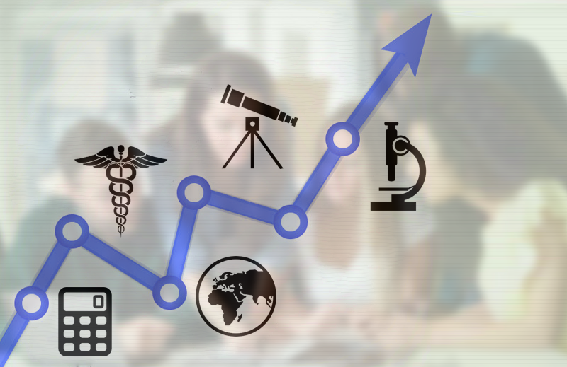A avaliação das proporções é interessante para termos uma ideia da distribuição de programas de excelência nas diversas área, mas algumas vezes é importante termos uma noção de tamanho. É possível que uma área tenha uma proporção alta de programas de excelência por ter um número muito baixo de programas, não que isso seja um problema, mas é um ponto que deve ser considerado se, por exemplo, estamos interessados em avaliar número de patentes produzidas em uma determinada área. A figura abaixo mostra a distribuição do total de programas seis ou sete por área. Mais uma vez as ciências humanas e sociais aparecem com apenas um representante na lista das dez áreas que lideram o ranking, dessa vez foi a área Letras/Linguística. Com nove programas classificados como seis e sete a área de Economia fica abaixo, porém próxima, da média que foi de 9,5 programas de excelência por área.