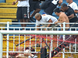 Fonte: GLOBOAs cenas foram fortes. Selvagens pisoteando torcedores do time adversário, pancadaria, covardia, tudo diante de uma multidão impotente, que incluía idosos, mulheres e crianças. Isso não é futebol. Isso é pura barbárie. É que bárbaros encotram no futebol, muitas vezes, um canal para extravasar sua barbárie.