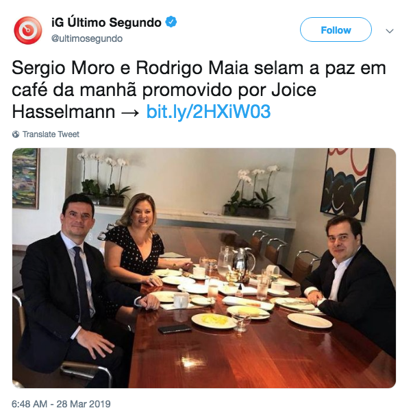 Enquanto isso, Joice Hasselmann promoveu um café da manhã entre Sergio Moro e Rodrigo Maia, para que também se entendessem. O nome disso é articulação, pragmatismo, deixar diferenças de lado em prol do país, no momento.