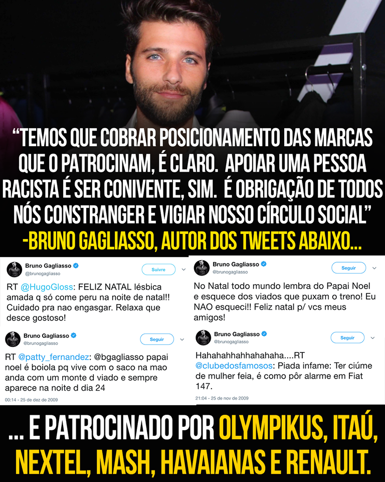 Gagliasso se meteu em assunto alheio para bancar o cruzado contra o racismo, defendendo a ideia de que deve haver maior fiscalização do público para inclusive pressionar empresas que patrocinam os supostos racistas. Ele só esqueceu que o mesmo poderia ser feito com ele também. Como acabou acontecendo: