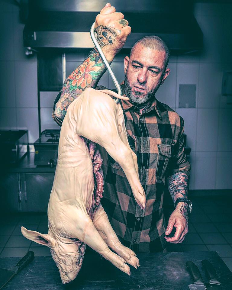 Falo isso para comentar o caso do chef Henrique Fogaça, que “chocou” o mundo com a foto de um cadáver de porco, na mesma linha de Rodrigo Hilbert, que apareceu num programa caçando e abatendo um carneirinho, e o chef Alex Atala, que já tinha degolado uma galinha ao vivo para depois fritá-la.
