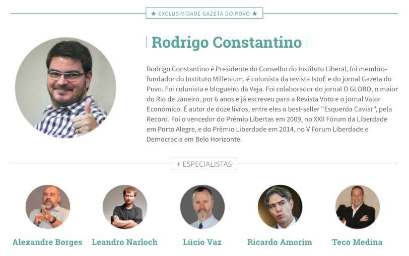 Por isso, é com muita honra que comunico a parceria com a Gazeta do Povo, que certamente irá fortalecer minha missão de divulgar o máximo possível minhas crenças no liberalismo clássico. Convido todos os meus leitores a conhecer melhor o excelente trabalho que eles fazem lá. Acredito que não irão se decepcionar.