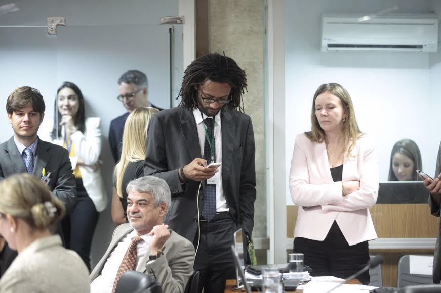 Durante as reuniões, ele cochicha com parlamentares como o líder do governo na Casa, Humberto Costa (PT-PE), ou a senador Vanessa Grazziotin, e faz troca frenética de mensagens por celular. Também acompanha o chefe da Advocacia Geral da União (AGU), José Eduardo Cardozo, em sua pregação anti-impeachment.
