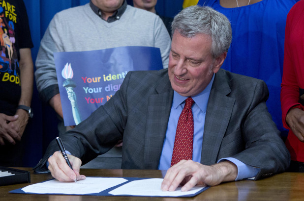 O ultra-esquerdista prefeito de Nova York, De Blasio, sancionou uma lei que permite que os residentes da cidade selecionem uma terceira categoria de gênero em suas certidões de nascimento sem ter que obter aprovação de um profissional médico.
