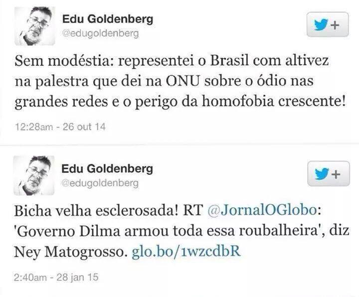 Nunca ouvi falar de um tal de Edu Goldenberg, mas numa rápida pesquisa parece ser um típico comunista defensor do indefensável. Pelo visto é um advogado que circula pelas hostes esquerdistas bajulando o PT e atacando os “golpistas”. Ou seja, mais um desse tipinho que pulula em nosso país, e proliferou mais do que o mosquito da zika após verbas e mais verbas estatais irrigarem os cofres dos “companheiros” (Leonardo Attuch, do Brasil171, que o diga). Mas por que falo desse ilustre desconhecido, então? Simples: porque é fácil demais – e importante, pois ainda existem muitos desavisados – desmascarar essa turma.