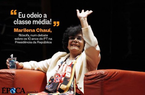 • os conflitos de classe social, onde os ressentimentos se concentram nos andares mais altos da classe média para cima, lá onde se situam os maiores ódios de Marilena Chauí;