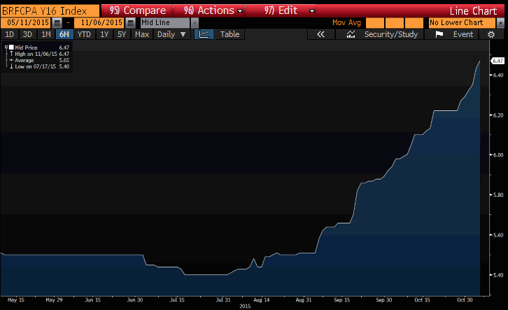 PIB esperado para 2016. Fonte: BloombergDe 2015 nem vamos falar mais que é para não causar depressão no leitor. A queda do PIB será maior do que 3% e a inflação ficará acima de 10%. Mas estamos falando de 2016, depois dessa catástrofe toda, quando muitos já achavam que o pior teria ficado para trás e o “ajuste fiscal” teria surtido efeito. Piada!